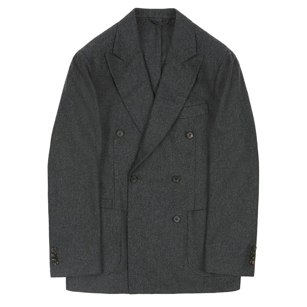 - Drake’s Grey Wool Flannel Double-Breasted Tailored Jacket