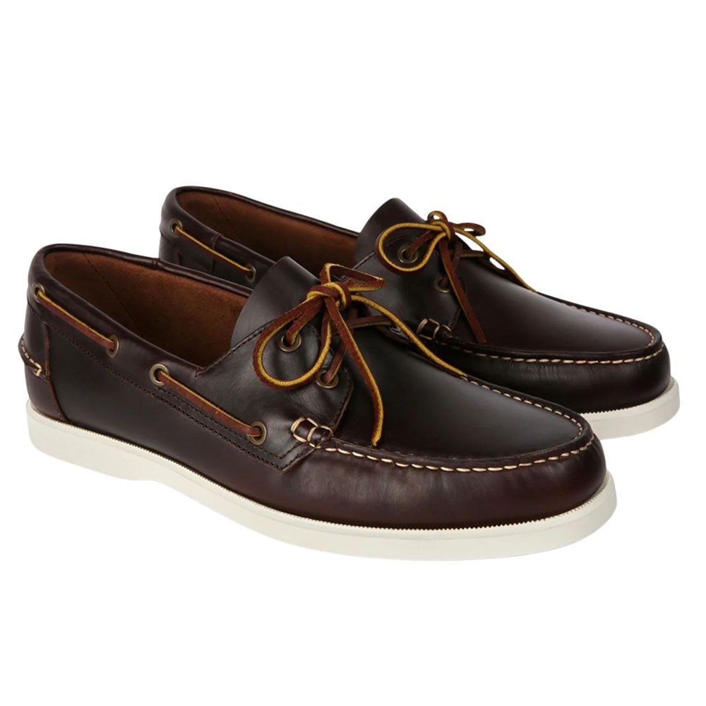 In terms of footwear, leather and suede will both work nicely, anywhere between beige and chestnut brown. If in doubt, a pair of brown suede loafers is a foolproof option.