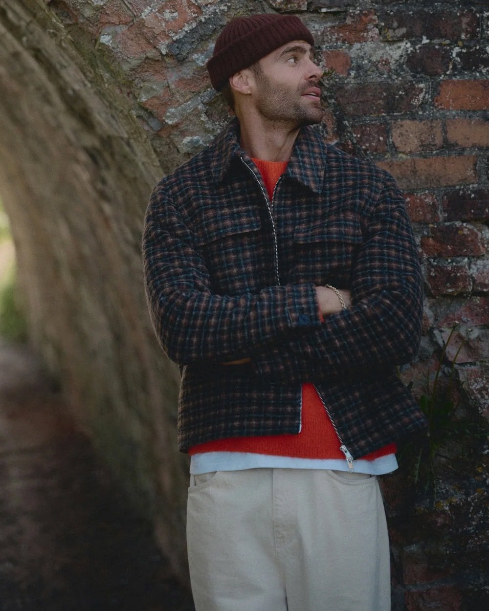 Think classic menswear pieces with contemporary cuts, playful colours and tactile fabrics. If you can imagine that, you can imagine Wax London. Born in London, the brand’s core piece is the Whiting overshirt – a chunky woven shirt-jacket hybrid that perfectly captures the mood.