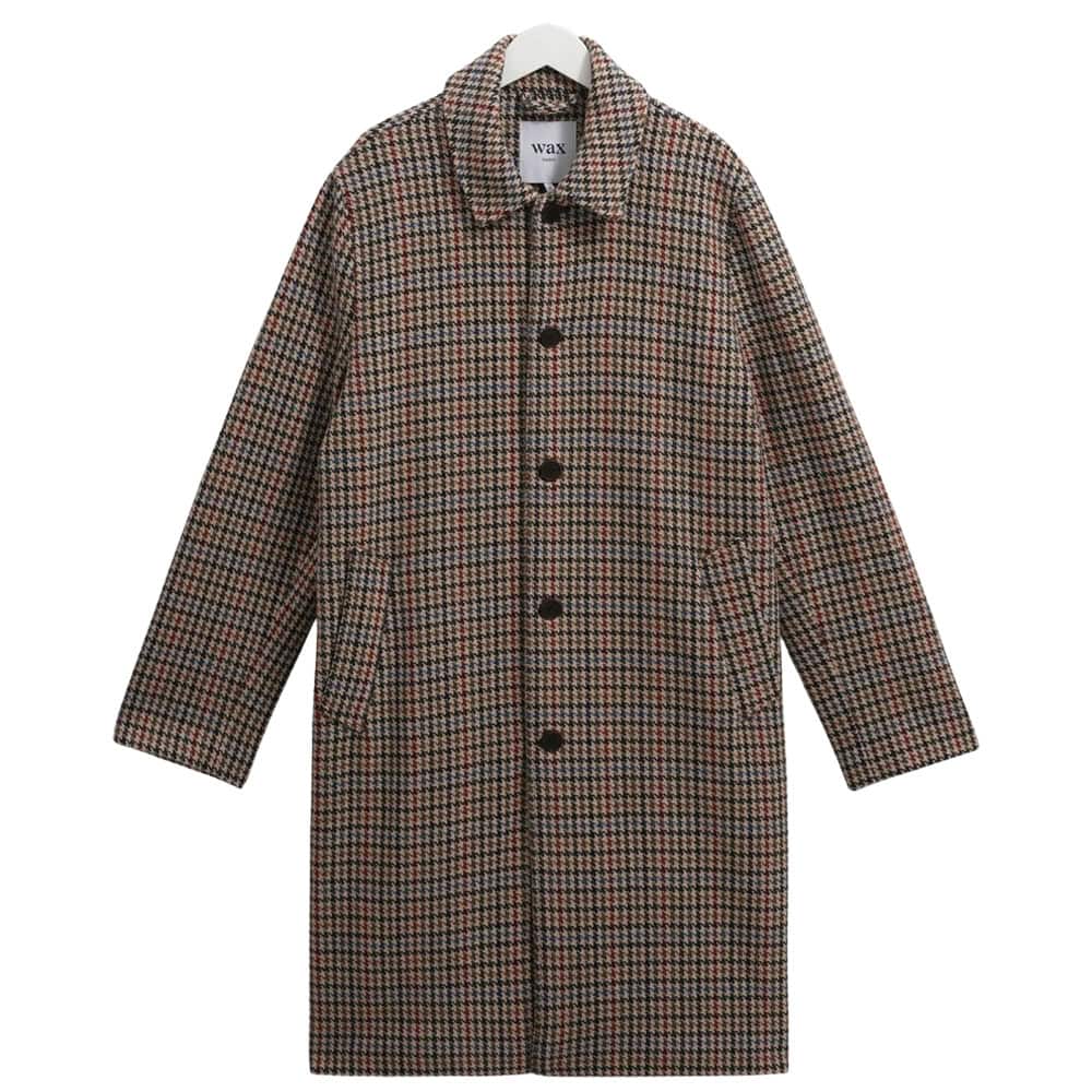 - Wax London Stan – Natural Houndstooth Check Wool Car Coat