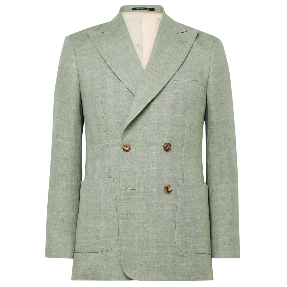 - Richard James Hepworth Double-Breasted Herringbone Linen and Wool-Blend Suit Jacket