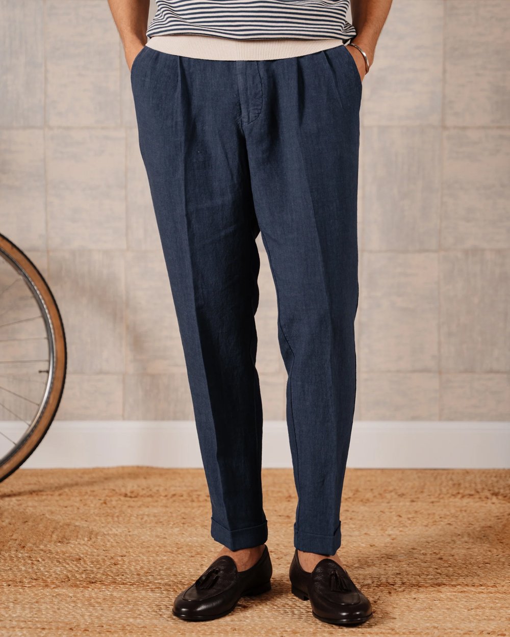 Not all summer situations call for shorts. When it comes to smarter settings, longer legwear is preferable, but being smart and being a comfortable temperature needn’t be mutually exclusive. Not if you arm yourself with a pair of linen trousers, that is.