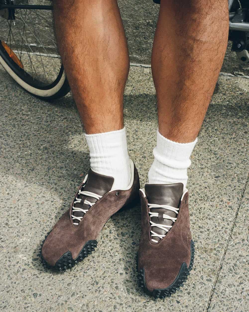 That said, this version strips the Mostro back to its absolute fundamentals. The oversized branding is gone from the side, the characteristic zig-zag Velcro has been replaced by laces, and the whole thing is finished off in a rich brown suede.