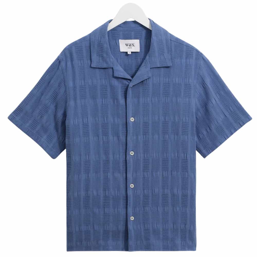 - Wax London Didcot – Mid-Blue Waffle Seersucker Cotton Short-Sleeve Shirt