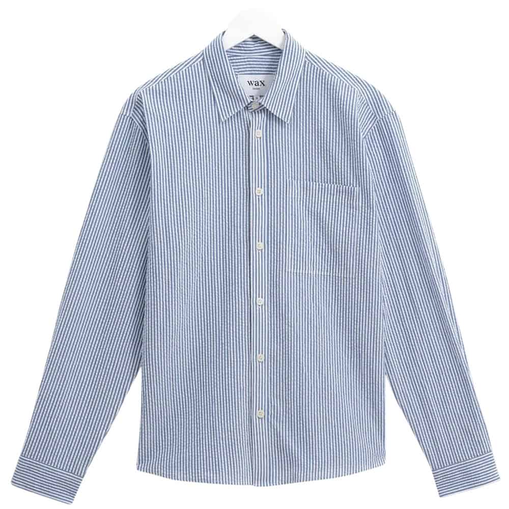 - Wax London Rove – Blue Striped Cotton Seersucker Shirt