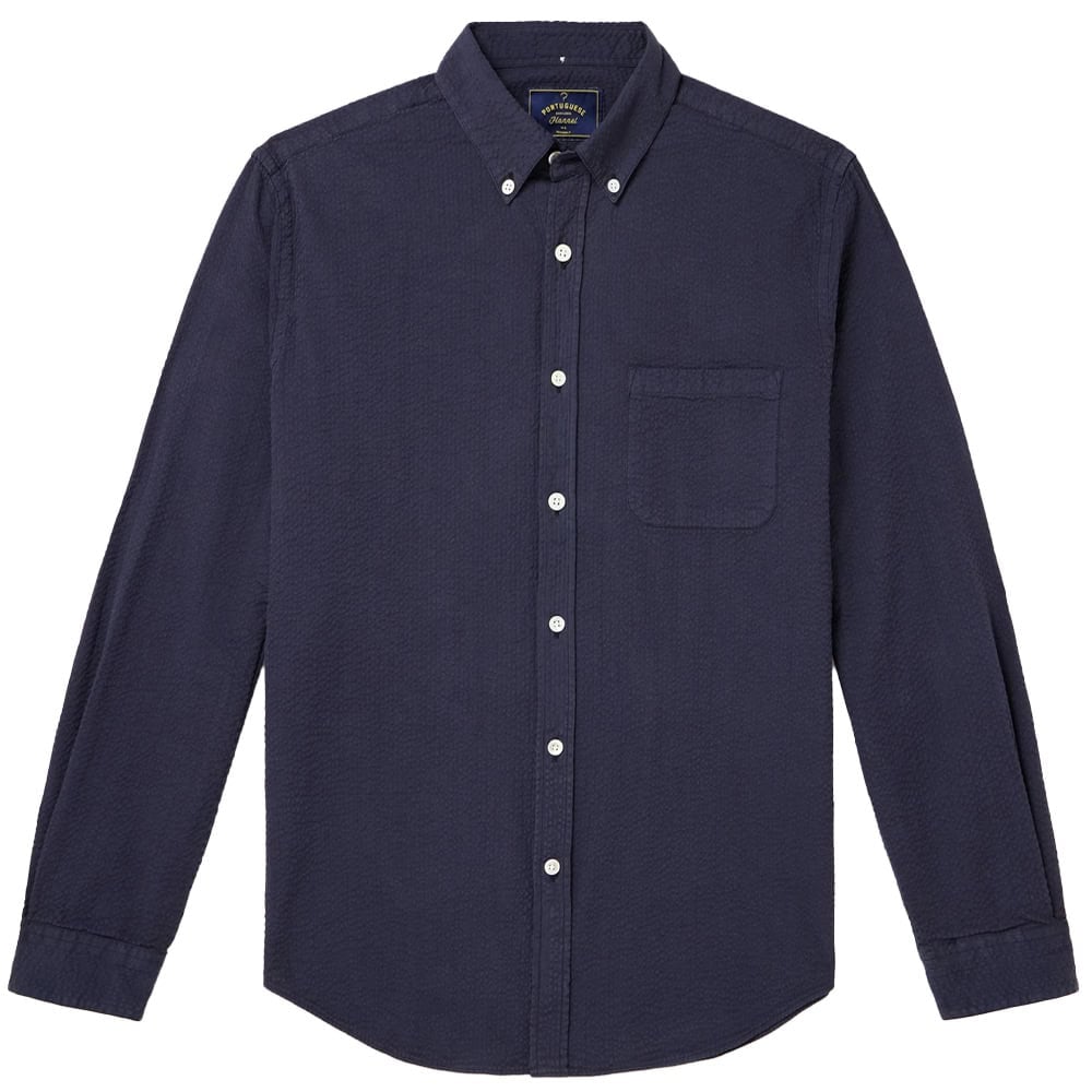 - Portuguese Flannel Atlantico Slim-Fit Button-Down Collar Cotton-Seersucker Shirt