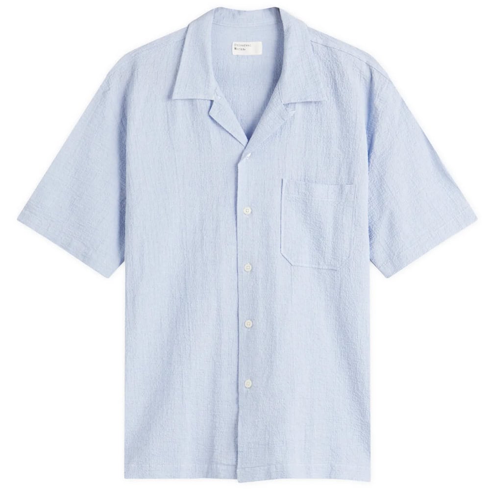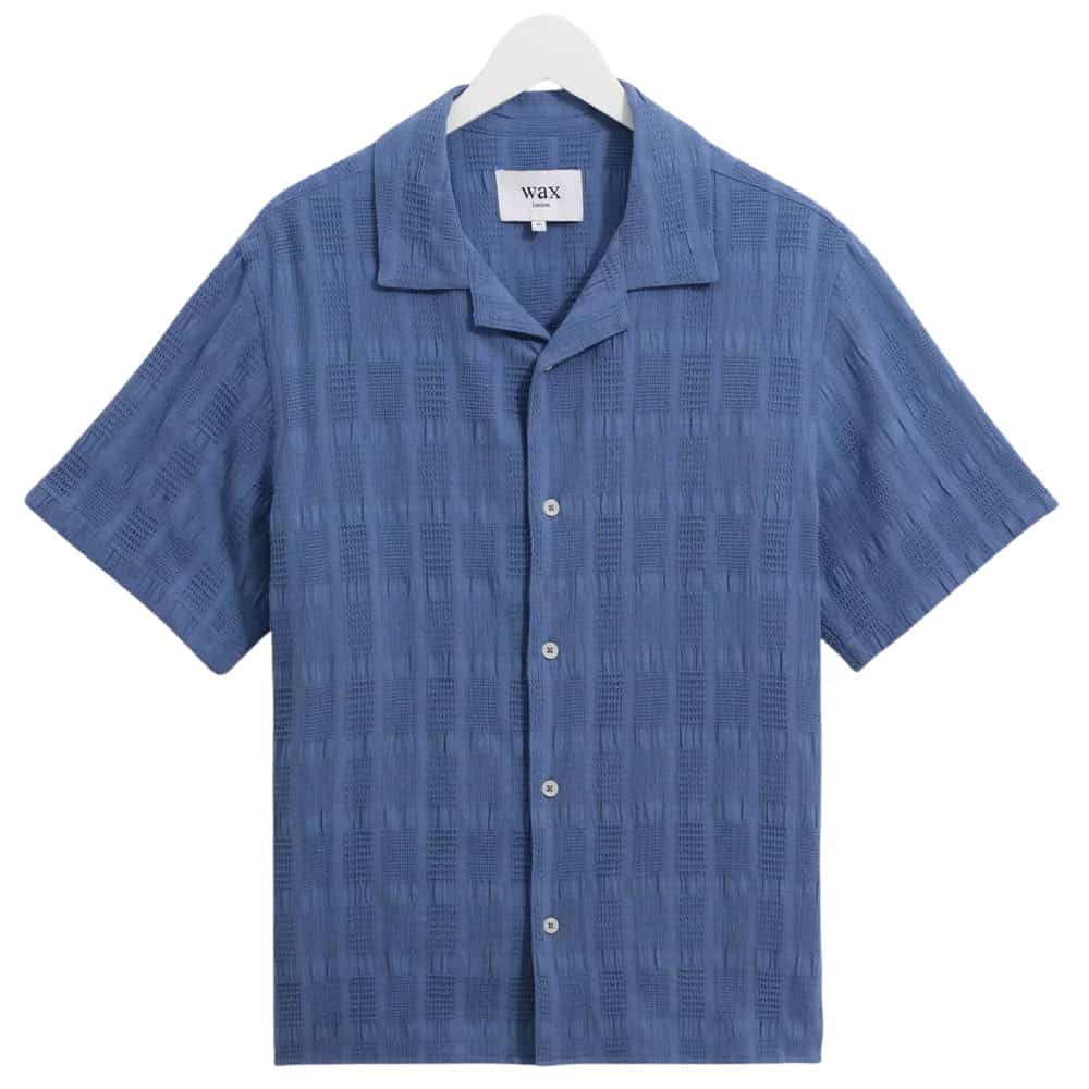 - Wax London Didcot – Mid-Blue Waffle Seersucker Cotton Short-Sleeve Shirt
