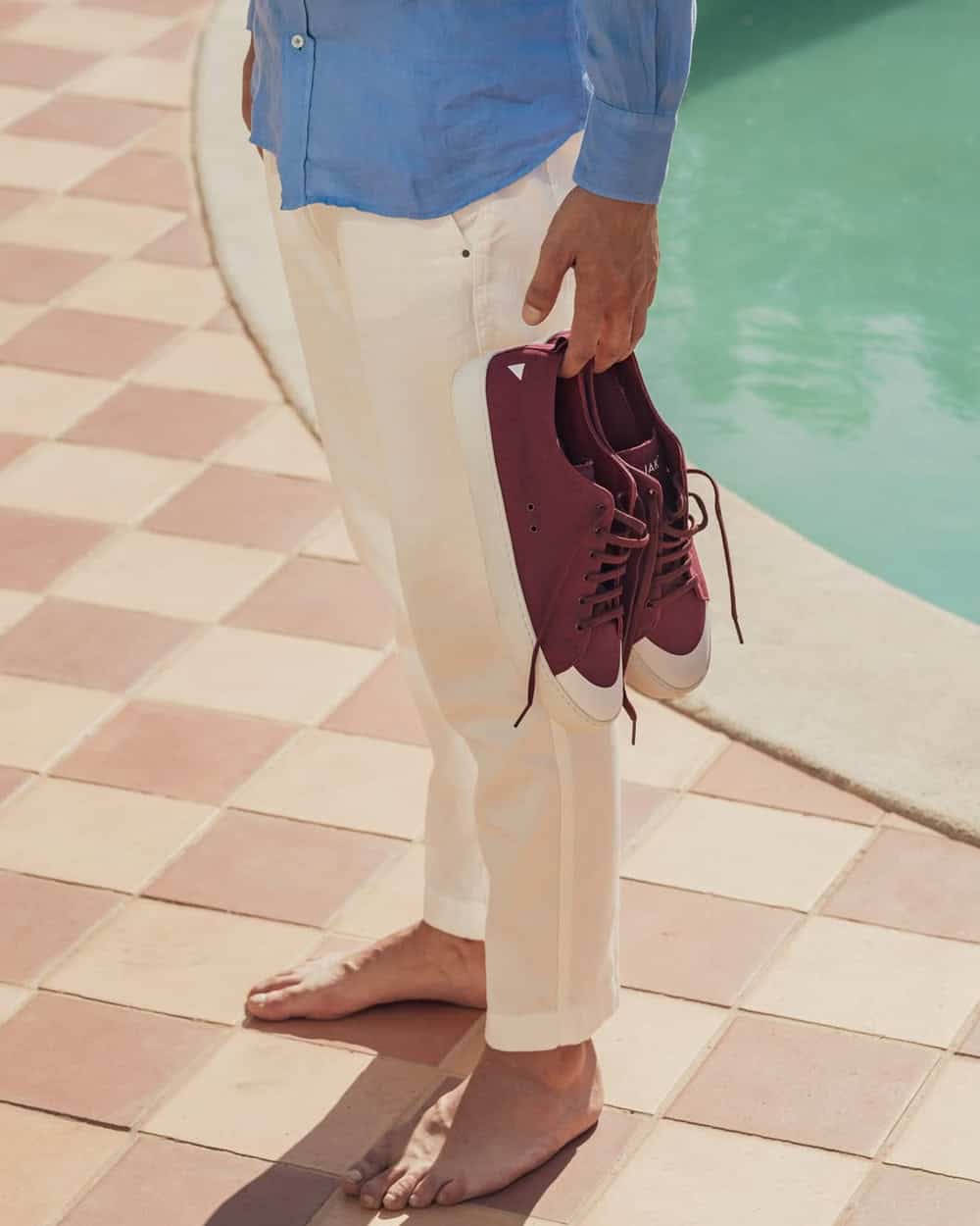 To match your unstructured blazer, a pair of linen trousers will keep you cool even when the time comes to get suited and booted. Plus, you can pair them with things like T-shirts and sneakers, which increases their versatility.