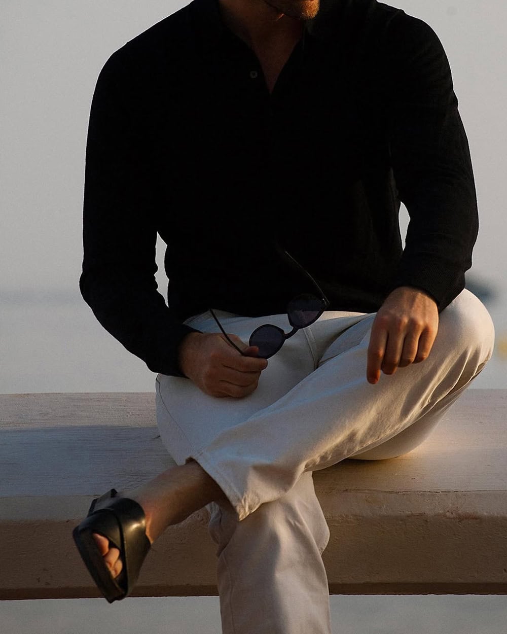 Another great textured option is a knit polo. It’s breathable, stretchy and comfortable, just like a regular polo, but it offers a slightly smarter and more interesting alternative.