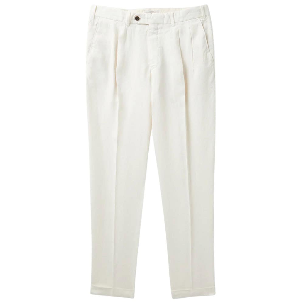 We’ve just spoken about the linen suit, but we want to differentiate it from the smart tapered style of trousers because, for the past few seasons, plenty of straight-leg and wide-leg linen strides have been making the rounds, and we love them.