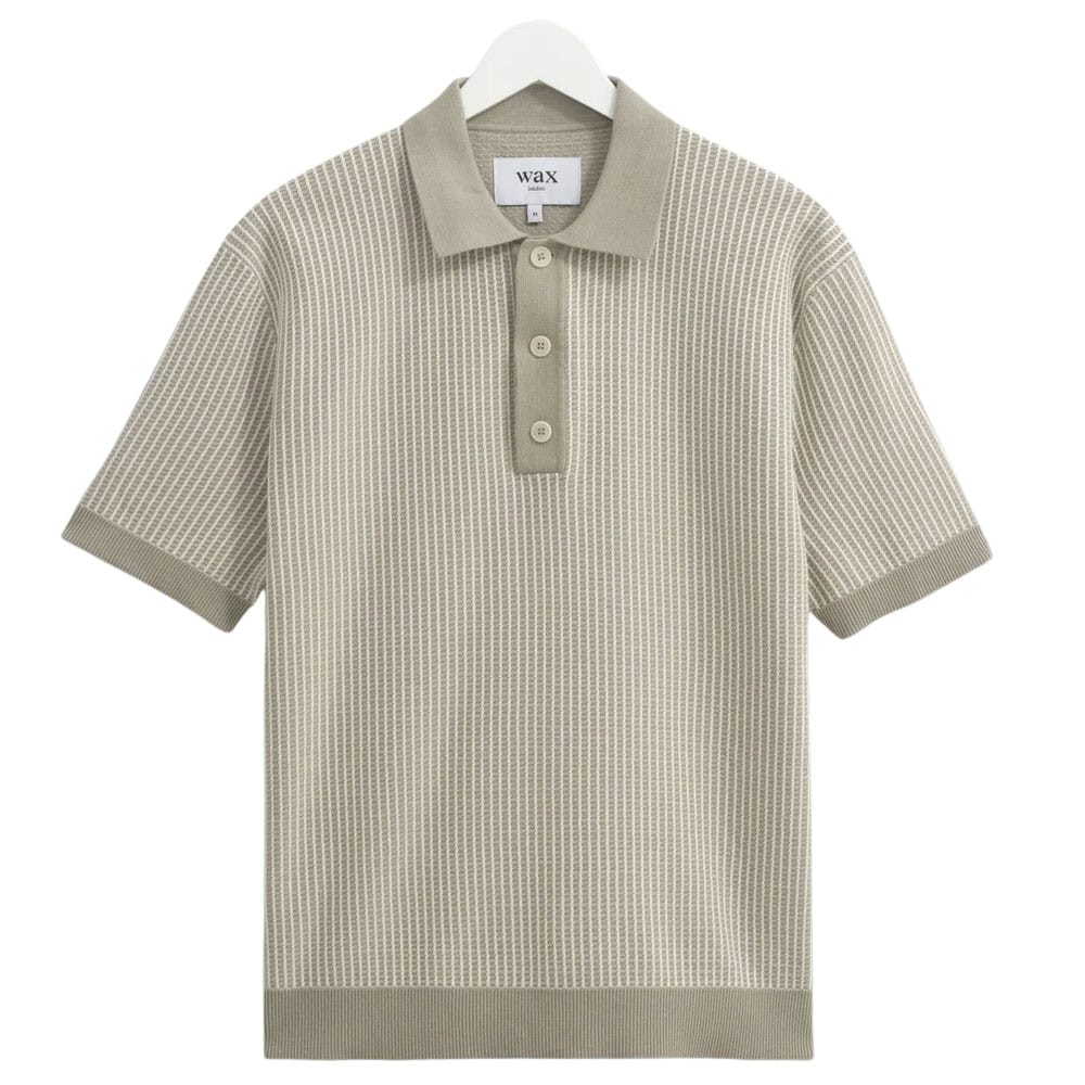 - Wax London Turin – Light Khaki Ladder Stripe Knitted Polo