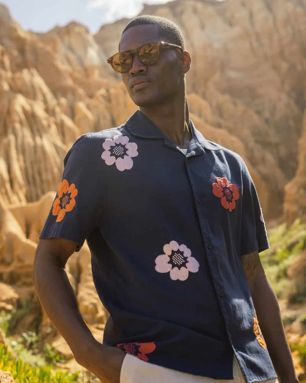 A short-sleeve shirt is smarter and more stylish than a T-shirt, but it leaves the arms free to breathe. Choose one with a camp collar for more of a laid-back aesthetic.