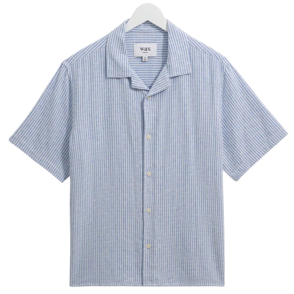 - Wax London Didcot – Blue And White Textured Stripe Short-Sleeve Shirt