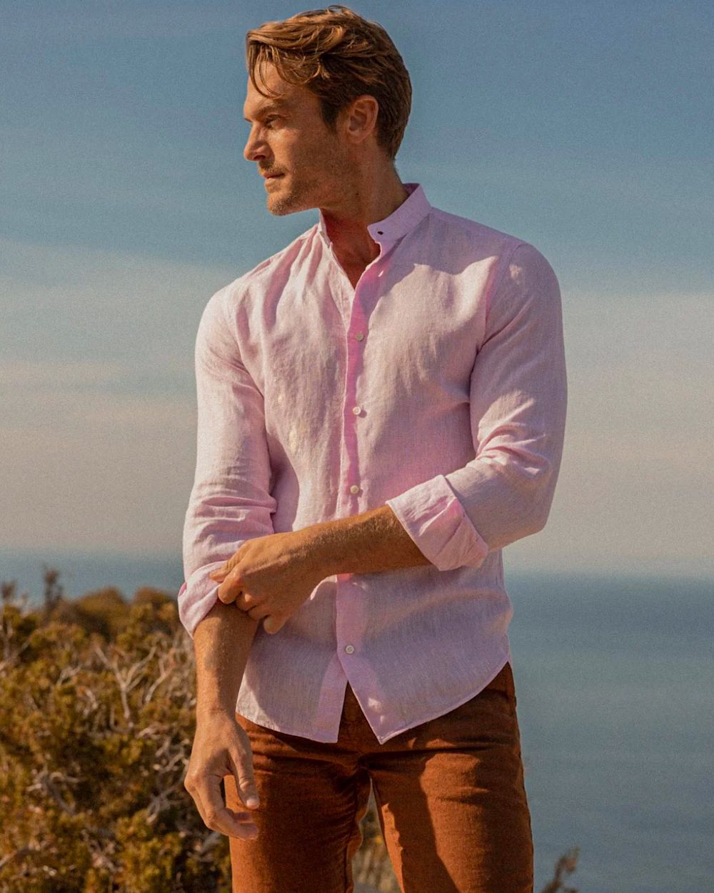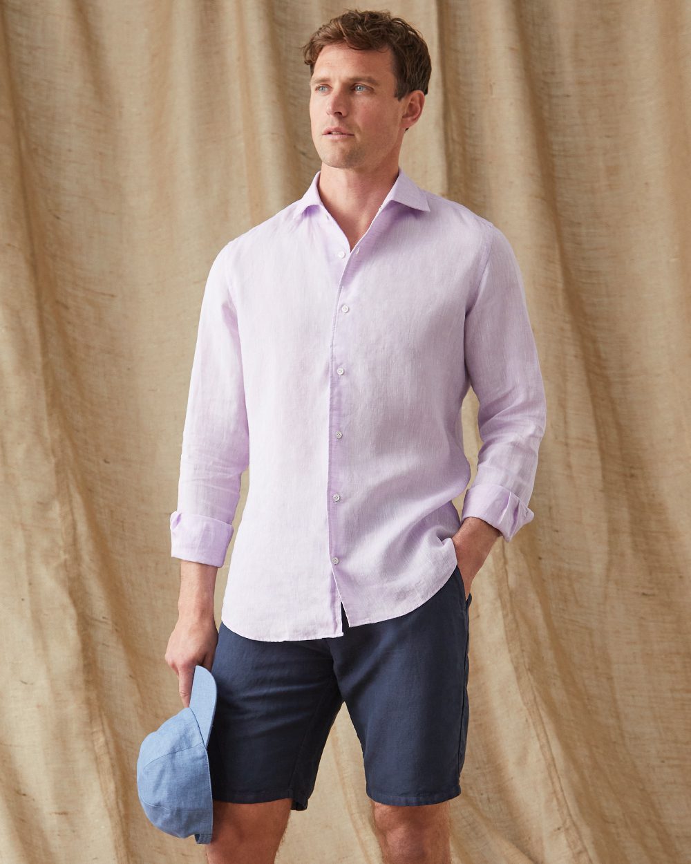 A linen shirt achieves a similar goal to an Oxford shirt, but it’s better suited to hot weather thanks to the fabric’s cooling properties.