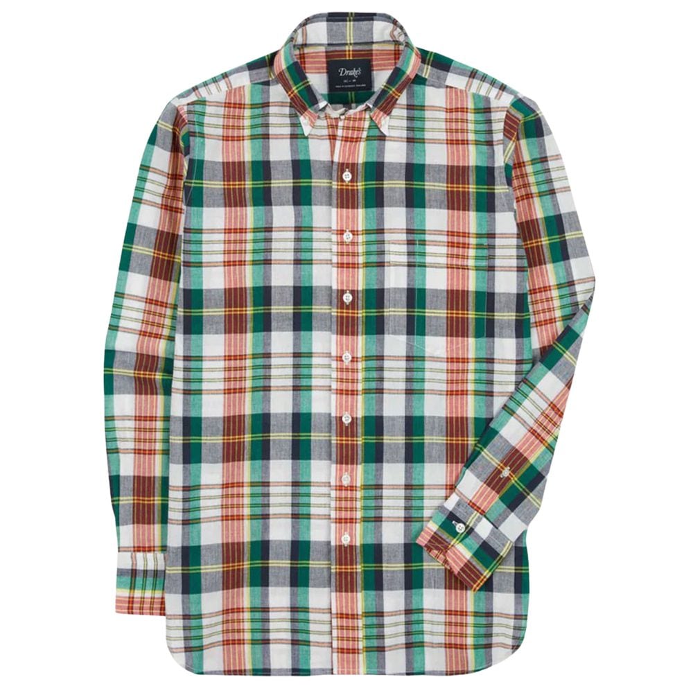 - Drake’s Blue and Red Madras Check Cotton Button-Down Shirt