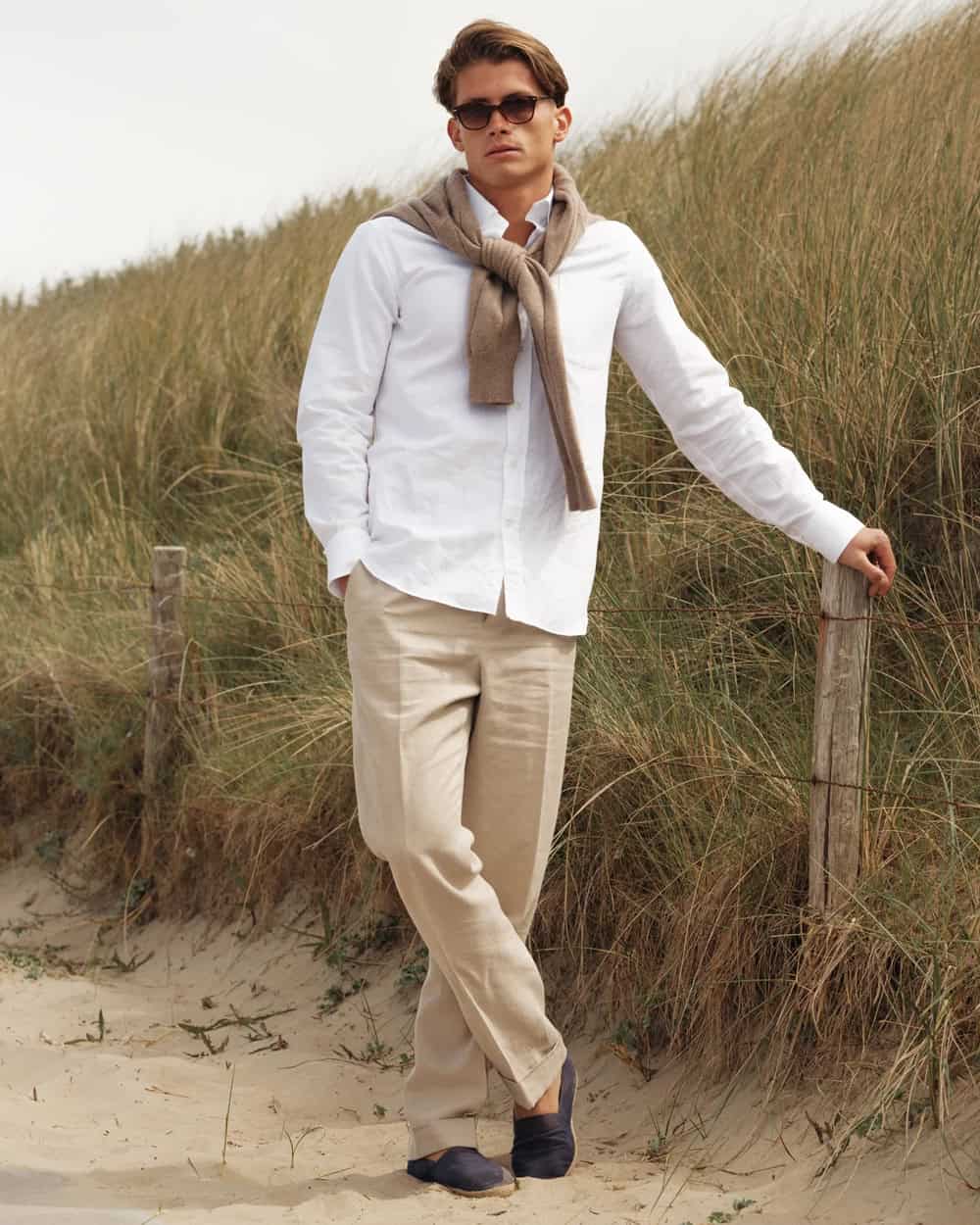 Much like the aforementioned linen trousers, the linen shirt is a key element to a sophisticated resort wardrobe. Aside from the already lauded properties of linen, this shirt swaps the stiff stand collar of its cotton cousin in favour of a much more relaxed soft roll collar.