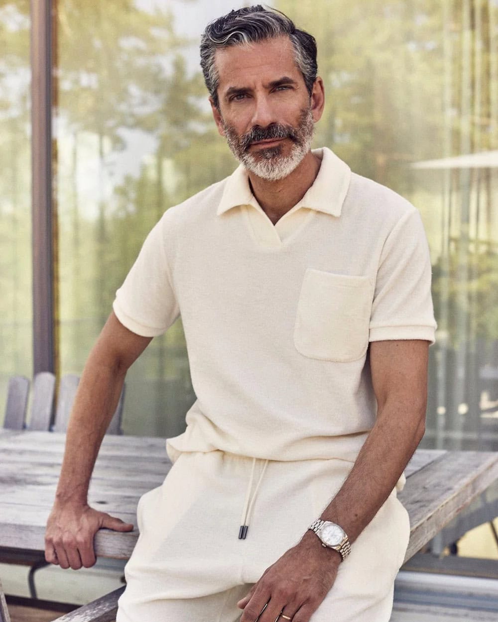 This makes it perfect for poolside lounging, of course, but it’s just a great lightweight tactile fabric that adds a unique textural quality to your holiday outfits. While it works well in the form of polo shirts and tees, you can also find some excellent softly tailored options in the form of terry blazers by the likes of Oliver Spencer and Armor Lux.