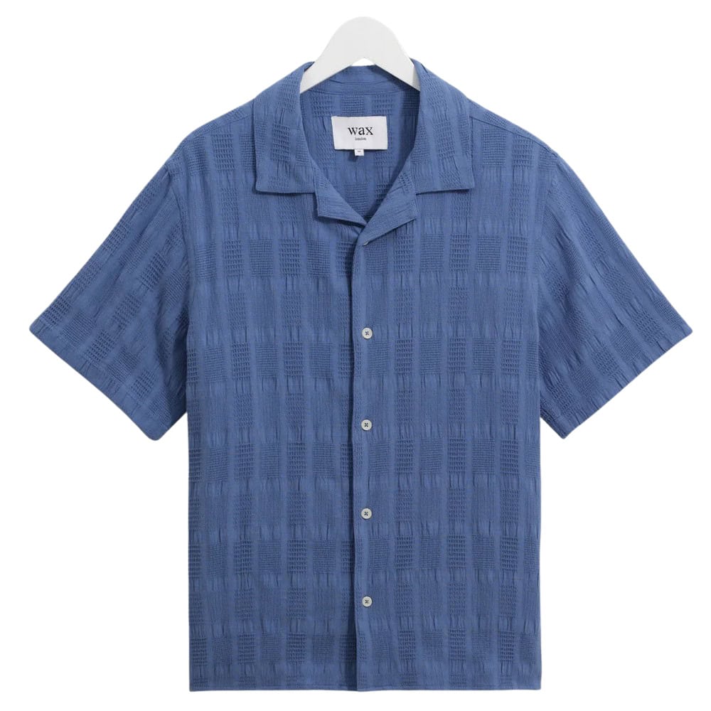 - Wax London Didcot – Mid-Blue Seersucker Cotton Short-Sleeve Shirt