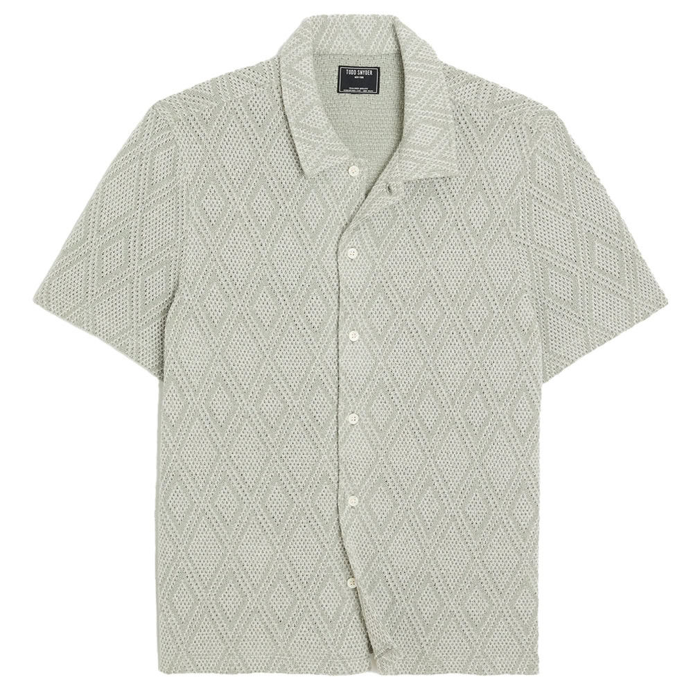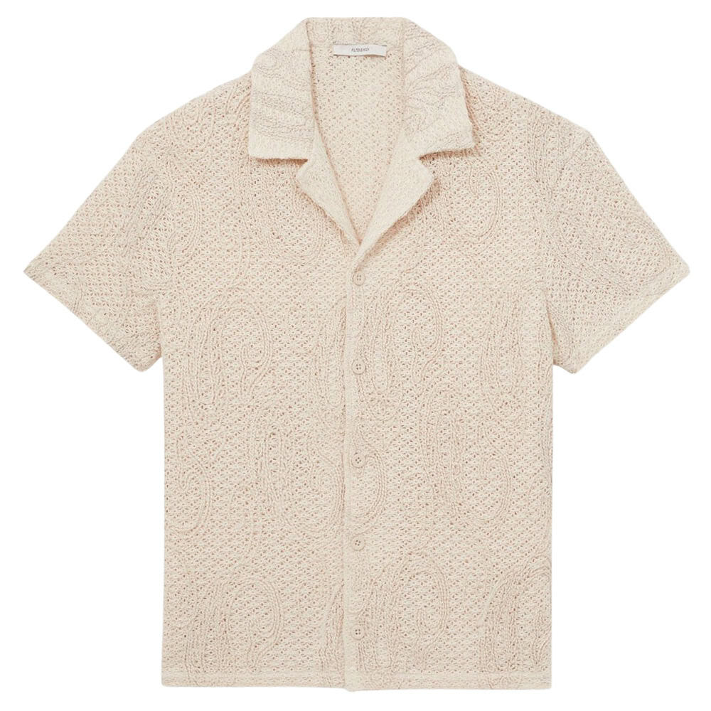 - Wax London Didcot – Ecru Open Weave Cotton Short-Sleeve Shirt
