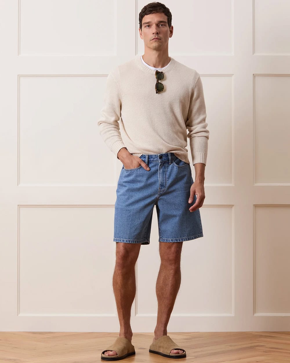 It’s typically regarded as a winter fabric, but when constructed from lightweight cotton it makes for a great pair of summer shorts, adding a nice element of textural pattern to a look.
