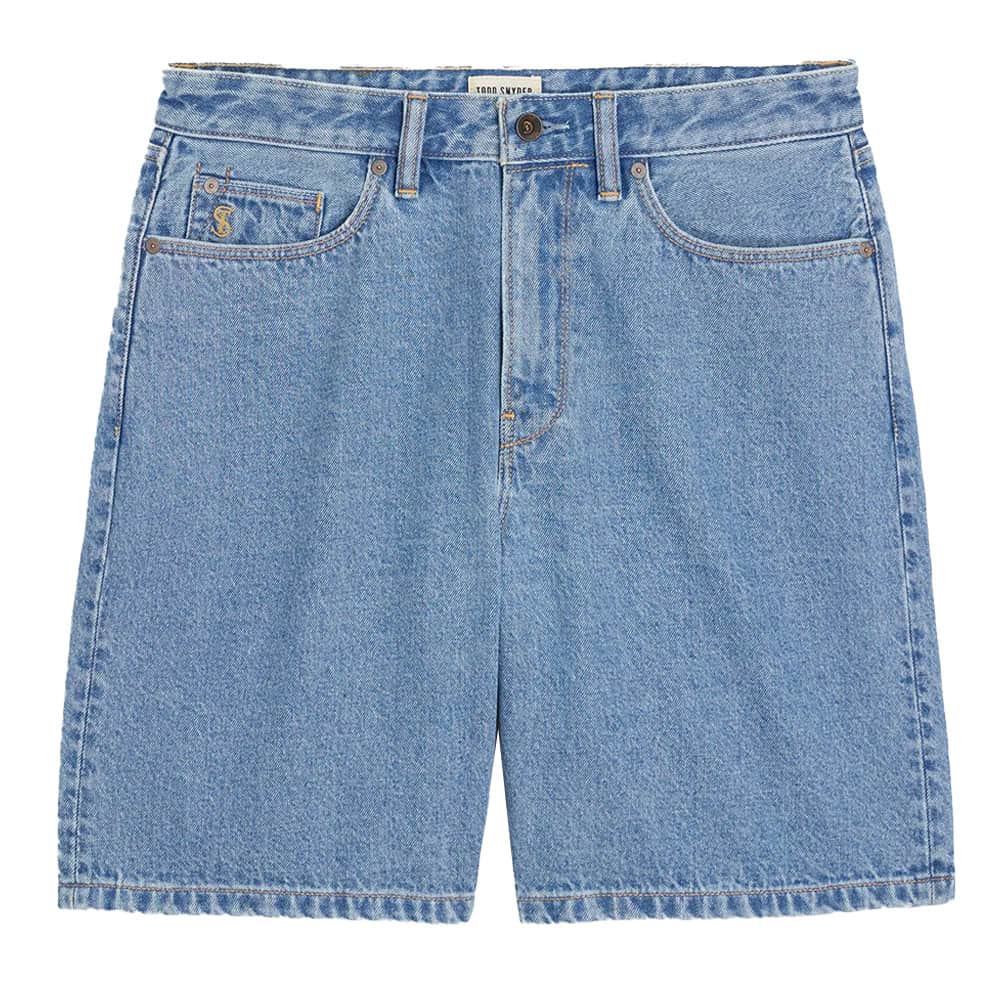 - Wax London Dalston – Mid-Blue Denim Shorts