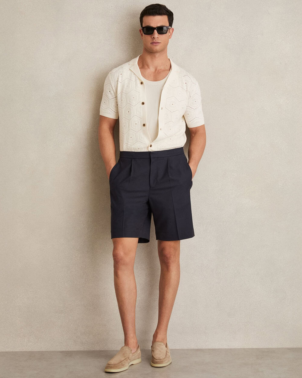 Of all the short styles on this list, the pleated variety has the most sartorial aesthetic. Cut much in the same way as a tailored pleated trouser, the single pleats provide a roomy fit as well as a smart old-school military vibe, which can look elevated when worn with relaxed tailoring, or even just a linen shirt.