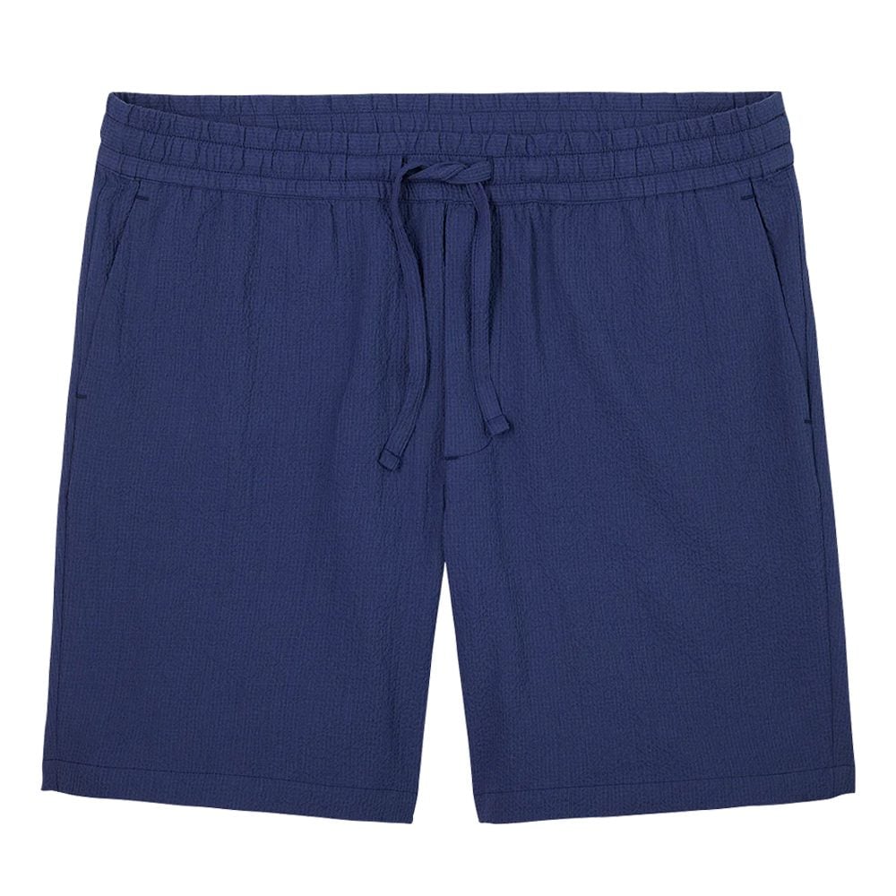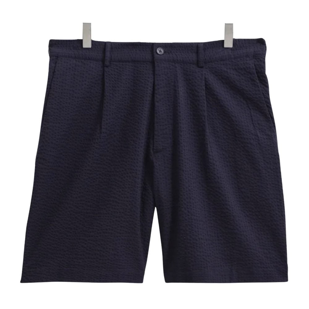 - Wax London Linton Pleat Shorts Navy Seersucker