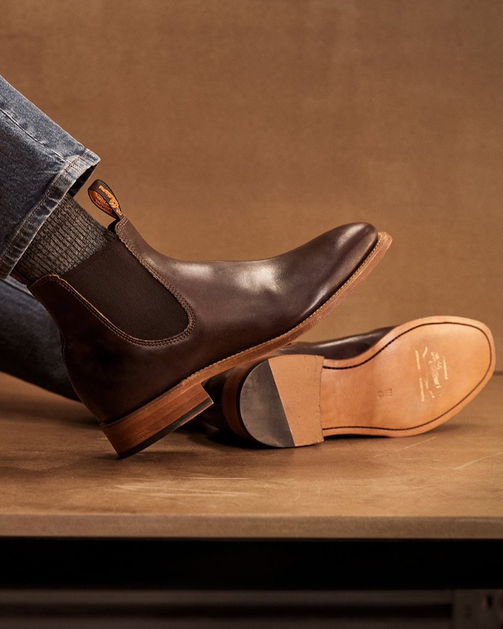 Historic Australian label R.M.Williams started out making handmade footwear for farmers, bushmen and blue-collar workers, but you’re more likely to find its Goodyear-welted boots clip-clopping around city streets than outback ranches these days.