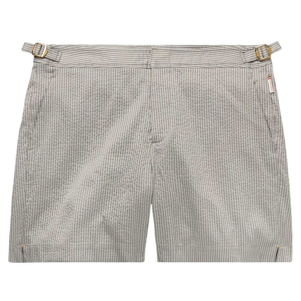 - Orlebar Brown Bulldog Straight-Leg Mid-Length Striped Seersucker Swim Shorts