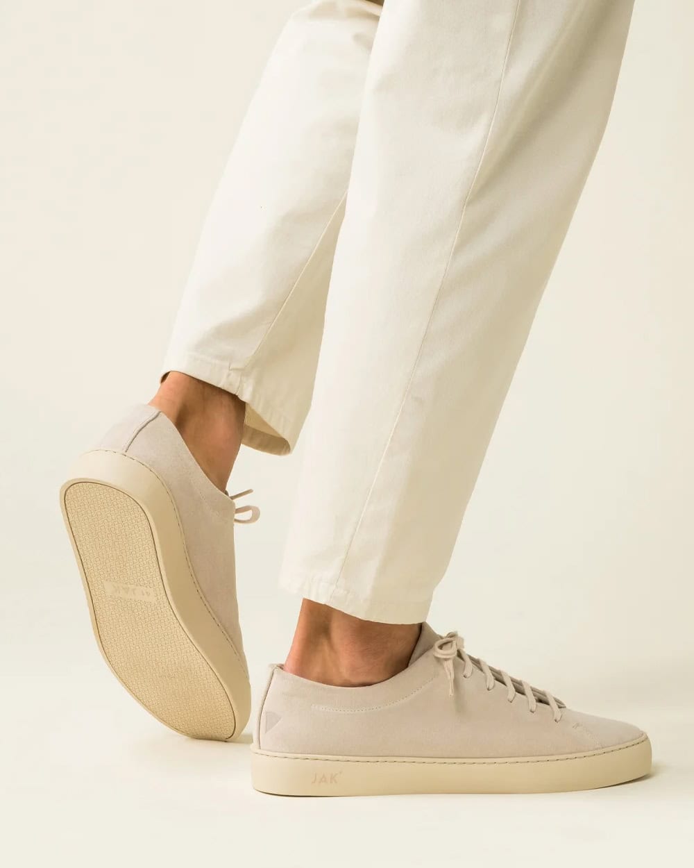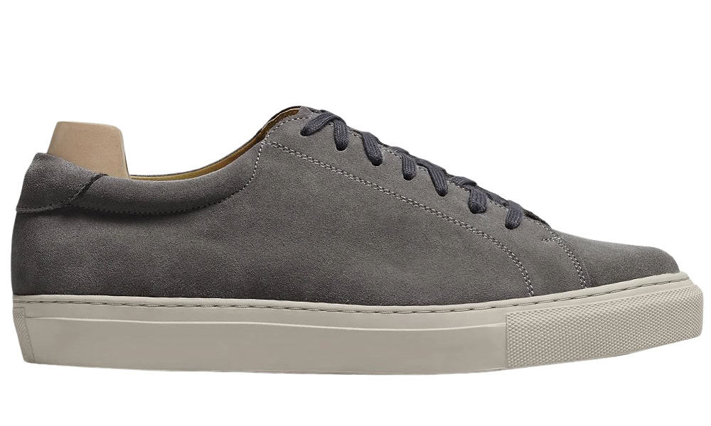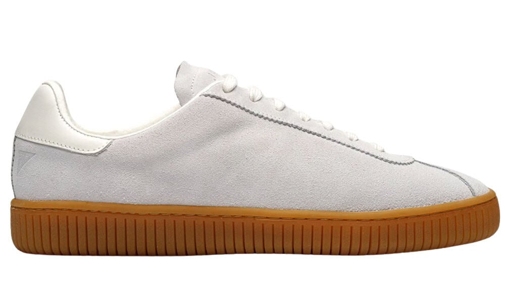 Suede is best here. The most obvious choice is New Balance. The 99X line’s trademark colour is light grey, and it doesn’t come much more versatile or simple to style than a pair of those.