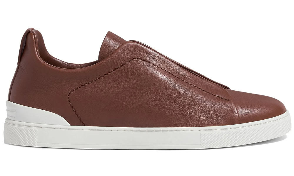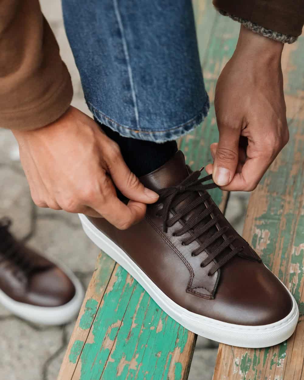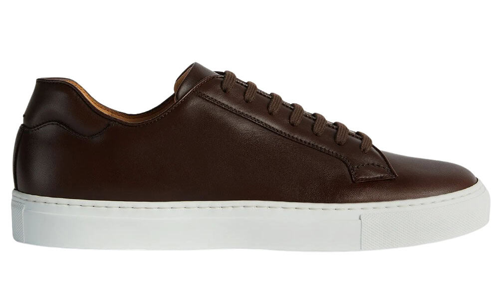 Plenty of styles work in brown, but the easiest to nail is a classic low-top sneaker. Something tennis shoe-inspired but refined. Think Common Projects Achilles Low or similar.