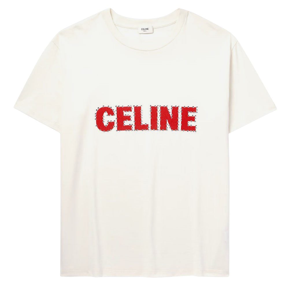 - CELINE HOMME Crystal-Embellished Logo-Print Cotton-Jersey T-Shirt
