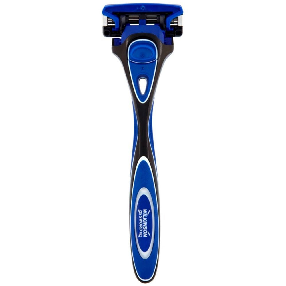 This five-blade option from Wilkinson Sword is a great, budget-friendly razor that produces a brilliant shave. The strip next to the blades is actually water activated and turns from solid putty to soothing gel when wet. It also has a nice ‘open’ design, which means it’s less likely to clog up with hair quickly.